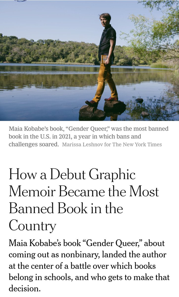 A few paragraphs later, NYT reported, “It’s a graphic memoir that deals with puberty and sexual identity, and includes a few drawings of nude characters and sexual scenarios — images that critics of the book were able to share on social media to stoke a backlash. The book explores the author’s discomfort with traditional gender roles and features depictions of masturbation, period blood and confusing sexual experiences.”